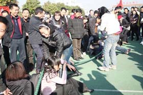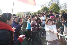 寒風簌簌,陽光絢爛。在2008年12月6日這個寒冷而富有激情的日子里,我司第一屆冬季運動會火熱開展。為了充分調動大家的激情,此次比賽項目的策劃可謂煞費苦心。除了籃球賽、4*100接力賽、100米短跑、乒乓球比賽、等傳統比賽項目外,新增了很多趣味比賽項目如:趕小豬、兩人三足跑、夾球跑……大家玩得不亦樂乎!為了充分調動大家積極性,我們?yōu)檫\動健兒們準備了豐富的獎品,有棉被、電蒸鍋、電熱水捂、手套、圍巾、領帶、保溫杯、指套裝、收音機、筆筒等等。我們還特設抽獎環(huán)節(jié),每項比賽的前三名都會獲得一張“金卡”,拿著金卡可以抽獎,中獎率為100%,未得金卡的選手們也將得到一份精美禮品。