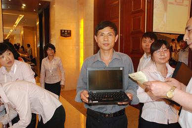 新穎的抽獎模式讓客戶大嘆驚奇,領(lǐng)取筆記本的喜悅隨處可見