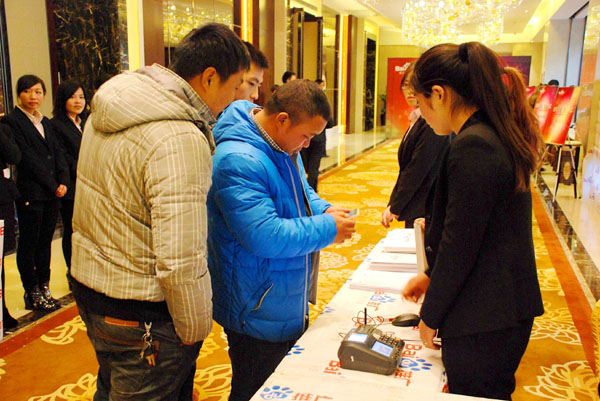 二維碼簽到區(qū),參會客戶簽到有序進(jìn)行中