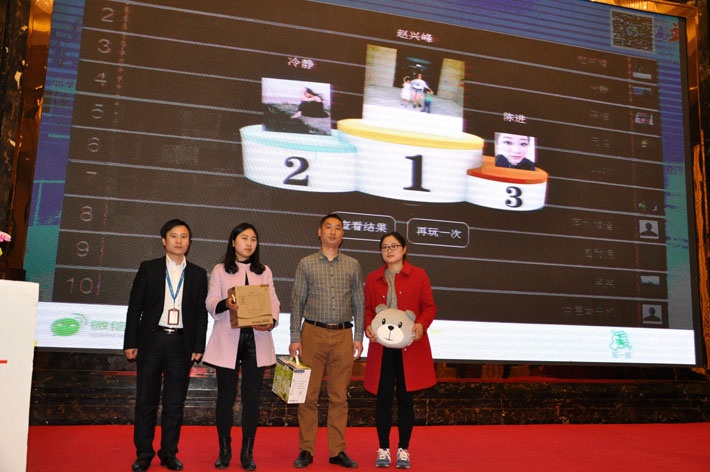 商務經(jīng)理符昌榮先生和劉阿梅女士為互動游戲獲獎企業(yè)家們頒獎留念